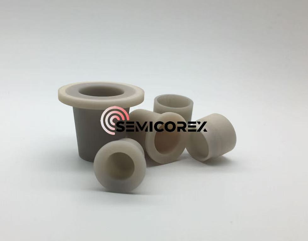 Crucibles aluminium nitrida digunakan dalam sintesis semikonduktor kompaun seperti Gallium arsenide (GaAs) untuk menghapuskan kekotoran SI dalam crucibles kuarza dan meningkatkan kesucian produk. Mereka juga boleh berfungsi sebagai substrat untuk pemanas seramik, chucks elektrostatik, dan komponen lain, yang sesuai dengan standard suhu tinggi, ketepatan tinggi, dan penebat peralatan semikonduktor.
