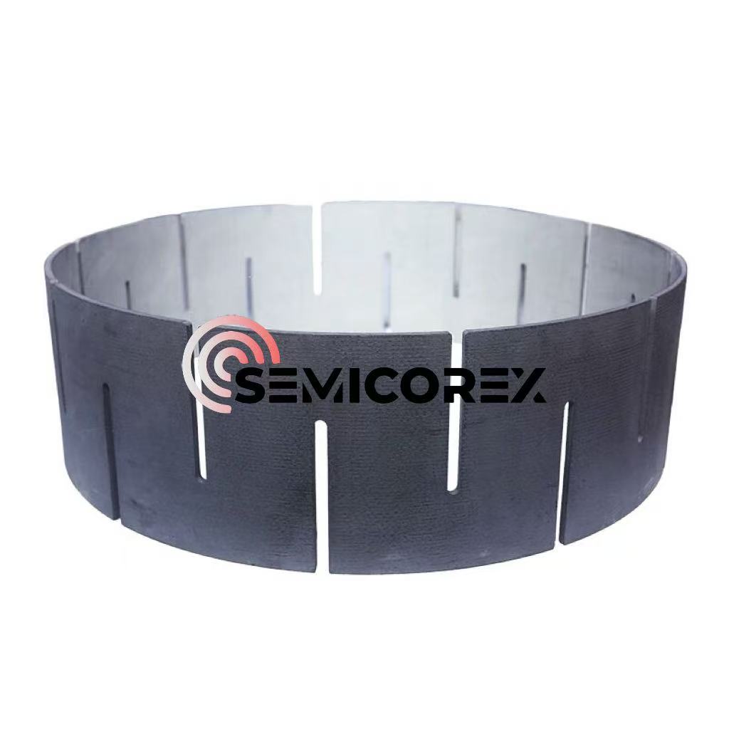 komposit C/Cpemanas biasanya diletakkan di sekeliling mangkuk pijar yang terletak di tengah-tengah relau pertumbuhan kristal, membekalkan haba seragam kepada bahan semikonduktor di dalam pijar melalui pemanasan rintangan. Apabila pemanas komposit C/C ditenagakan, gentian karbon dan matriks boleh menjana haba terima kasih kepada kesan rintangan. Haba ini dipindahkan ke bahan semikonduktor dalam mangkuk pijar melalui pengaliran terma dan sinaran, menaikkannya kepada suhu yang diperlukan untuk lebur kristal. Untuk memastikan pengagihan suhu yang lebih konsisten dan berkesan, beberapa pemanas komposit C/C boleh digabungkan untuk mencipta struktur pemanasan berlapis untuk relau pertumbuhan kristal yang besar.