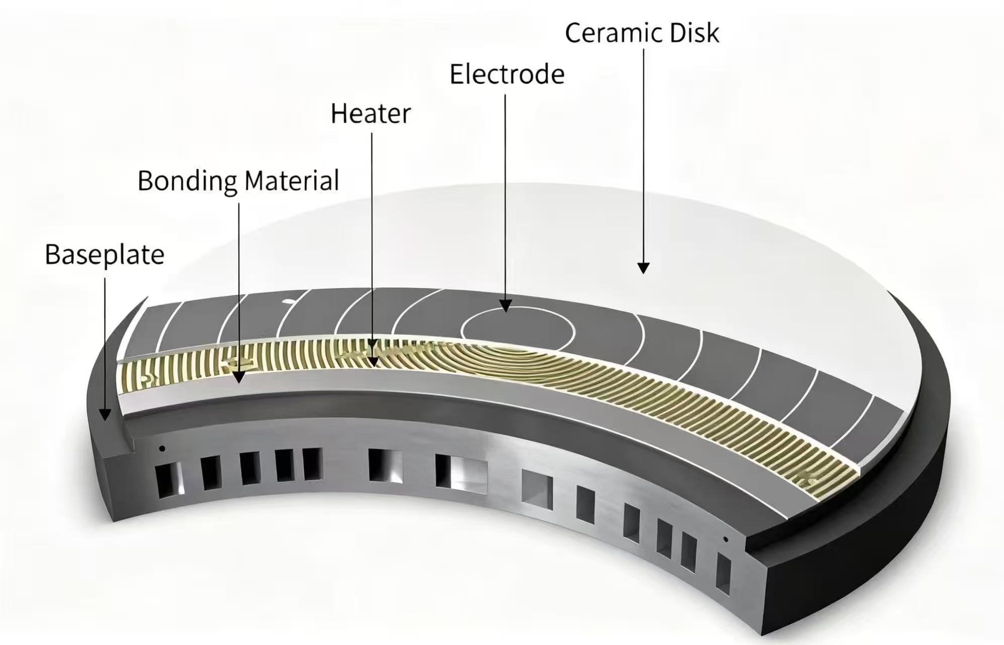 Berbanding dengan chuck mekanikal tradisional dan chuck vakum, chuck elektrostatik seramik mempunyai banyak kelebihan dalam bidang pembuatan semikonduktor. Chuck elektrostatik seramik ini menggunakan elektrik statik untuk meratakan dan sama rata memegang wafer di permukaannya. Daya penjerapan seragam ini dapat memastikan objek terserap agak rata, mengelakkanwaferWarping atau ubah bentuk yang mungkin disebabkan oleh keruntuhan mekanikal tradisional atauVakum Chucks, dan memastikan bahawa wafer mengekalkan ketepatan pemprosesan yang sesuai untuk proses semikonduktor ketepatan tinggi.
