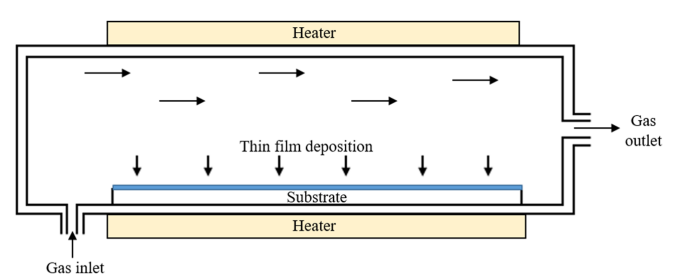 1. Prekursor REAction disampaikan ke dalam ruang tindak balas oleh gas pembawa. Sebelum mencapai substrat, gas tindak balas mungkin menjalani tindak balas fasa gas homogen dalam aliran gas utama, menghasilkan beberapa produk dan kelompok perantaraan.
