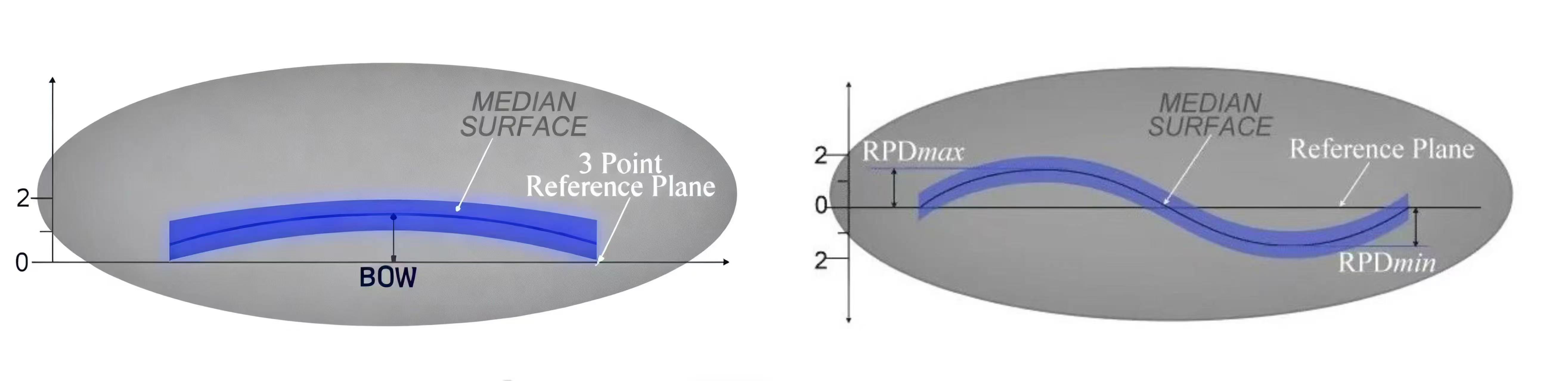 Penunjuk busur memberi tumpuan kepada mengimbangi menegak kawasan Pusat Wafer, yang hanya mencerminkan keadaan lenturan tempatan. Ia sesuai untuk menilai senario yang sensitif terhadap kebosanan tempatan. Penunjuk Warp berguna untuk menilai kebosanan dan herotan secara keseluruhan kerana ia menganggap sisihan seluruh permukaan wafer dan memberikan maklumat mengenai kebosanan keseluruhan untuk keseluruhan wafer.