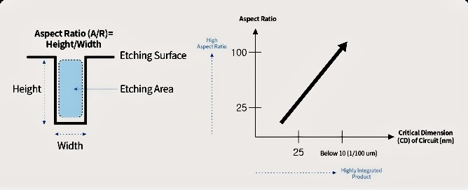 Nisbah aspek, seperti namanya, adalah nisbah kedalaman etsa kepada lebar apertur. Struktur nisbah aspek adalah keperluan teras untuk peranti 3D dalam MEMS, dan mesti dioptimumkan melalui nisbah gas dan kawalan kuasa untuk mengelakkan kemerosotan kadar bawah.