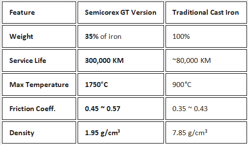 Pengurangan Jisim: Versi GT hanya seberat 35% daripada cakera besi tuang standard.