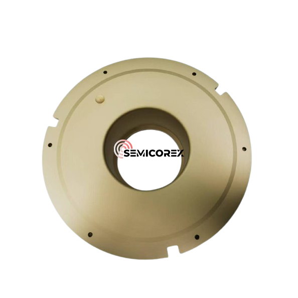 Cincin TaC digunakan terutamanya dalam proses pertumbuhan kristal tunggal SiC, di mana ia berfungsi sebagai bahagian penting dalam relau pertumbuhan kristal. Ia diletakkan dalam sistem untuk mengarahkan aliran gas dan haba, memastikan persekitaran homogen yang mengoptimumkan kadar pertumbuhan dan kualiti kristal. Peranannya sebagai gelang pengagihan aliran adalah penting dalam memastikan suasana proses kekal konsisten dan terkawal, secara langsung memberi kesan kepada kualiti kristal SiC yang terhasil.